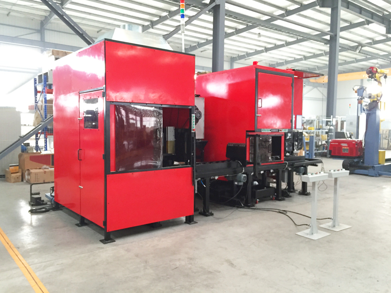 油缸工件(碳鋼8.0mm)自動鉆孔、機器人焊接傳輸線